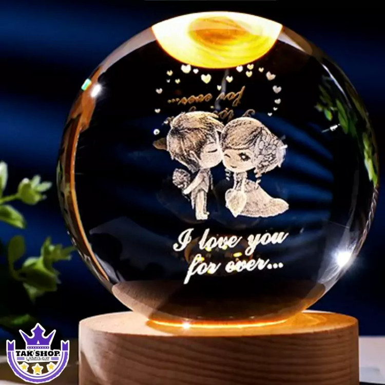 گوی چراغ دار طرح love دختر و پسر دکوری گوی کریستالی چراغدار جهیزیه هدیه خاص کادویی چراغ خواب ترند تک شاپ