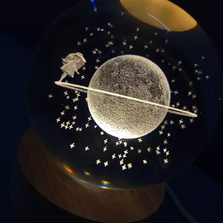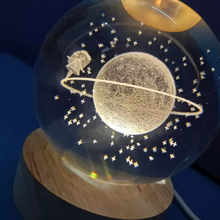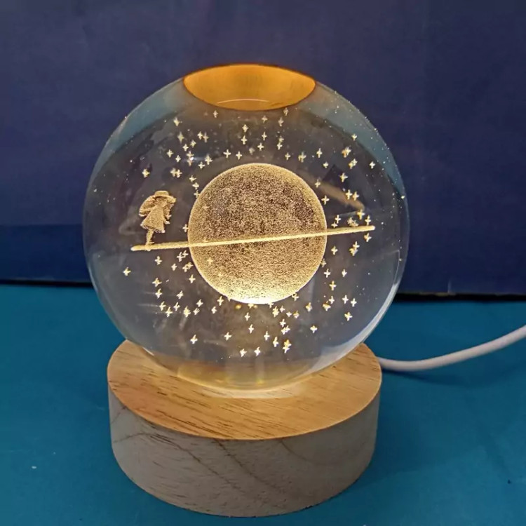 گوی چراغدار بزرگ قطر 8 سه بعدی بهترین گوی کریستالی دکوری جذاب جهیزیه مناسب کادویی هدیه طرح سیاره چراغ خواب کادو تولد