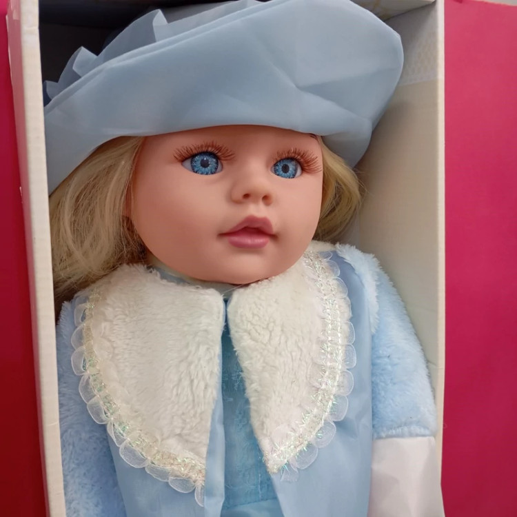 عروسک بزرگ رنگ آبی موزیکال فارسی سیسمونی خاص دخترانه