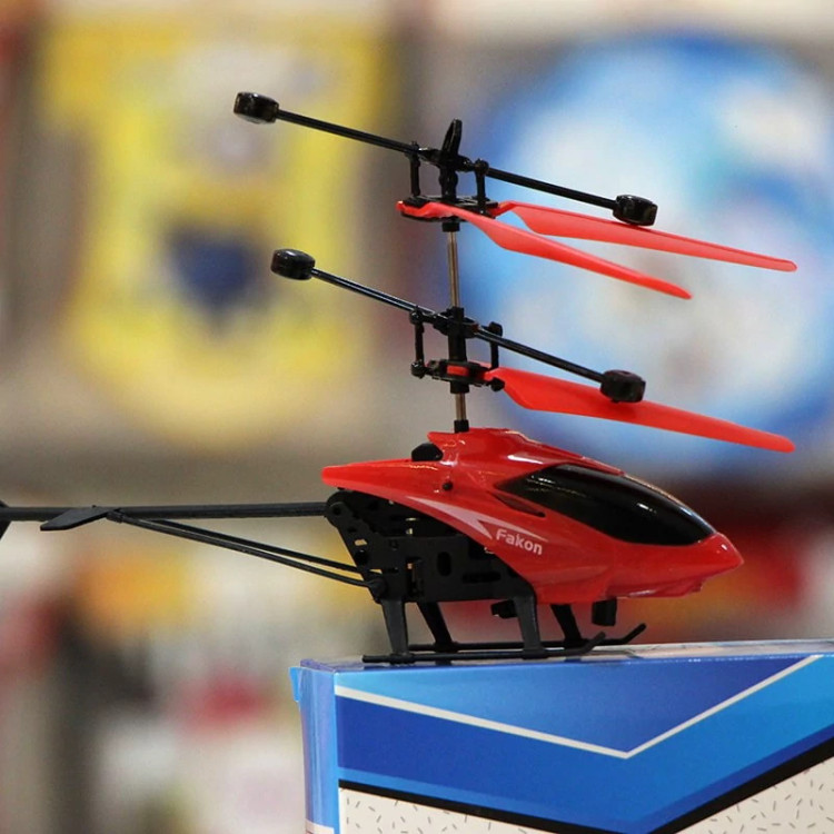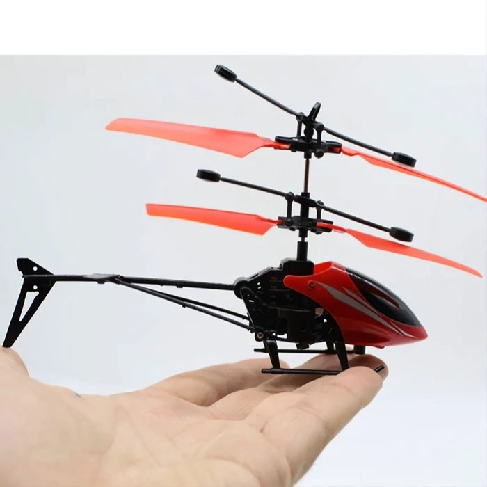 هلیکوپتر پرنده سنسور برخورد با زمین شارژی چراغدار دارای کنترل دو کانال دکمه روشن و خاموش به همراه کابل شارژ بسته بندی جعبه ارسال فوری به سراسر کشور