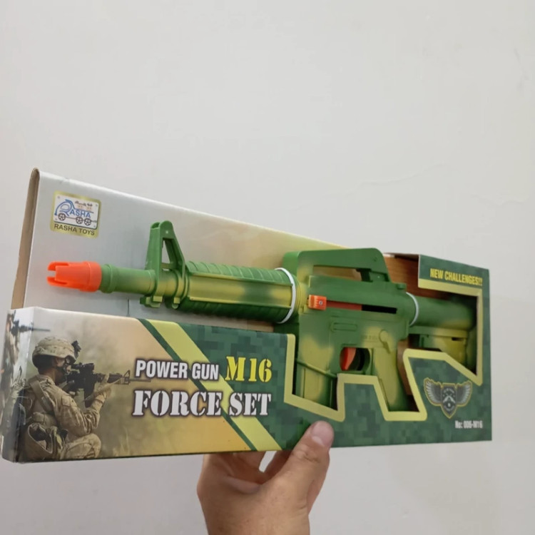 تفنگ اسباب بازی مدل M16 اسباب بازی خوش قیمت مناسب کادویی یا هدیه سیسمونی مناسب سنین 2 تا 6 سال دارای صدای رگبار به صورت میکانیکی جنس بنده مستحکم و مقاوم بدون نیاز به باطری