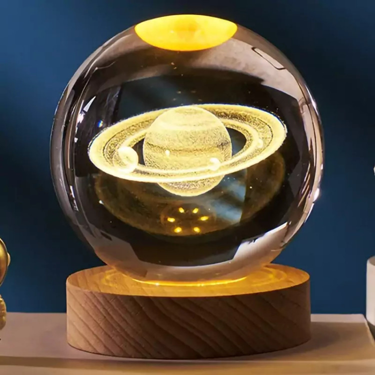 گوی زحل دکوری گوی کریستالی قطر8 بزرگ چراغدار جهیزیه کادویی طرح سیاره زحل چراغ خواب