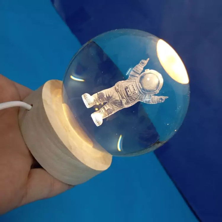 گوی چراغدار کریستالی قطر 8 بزرگ طرح فضانورد کادویی هدیه جذاب چراغ خواب خاص و جدید ترند گوی جادویی
