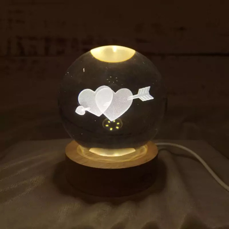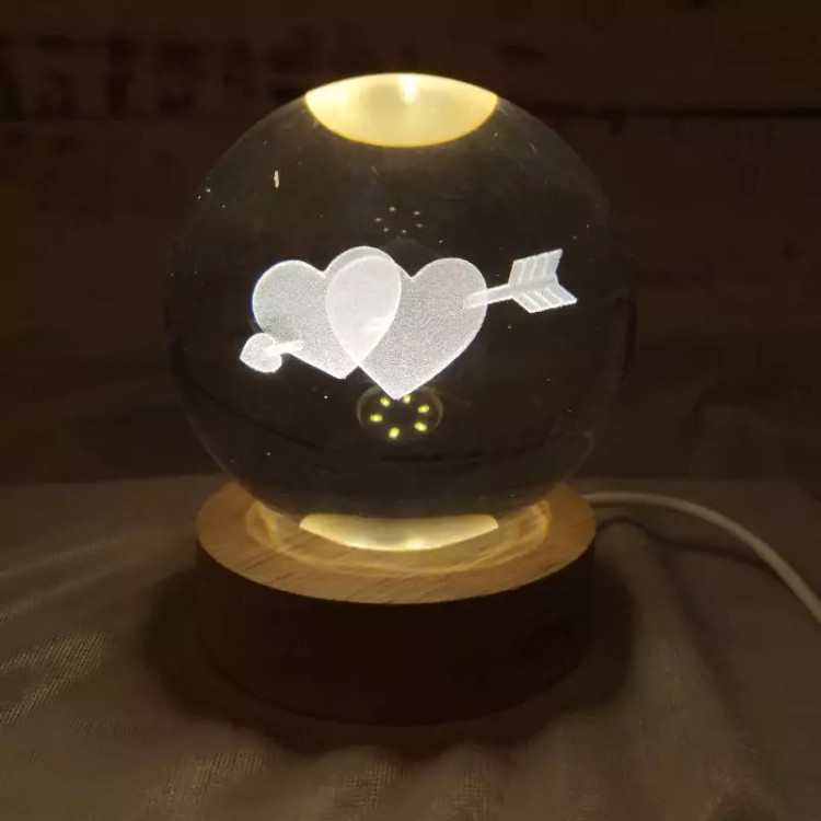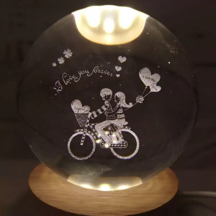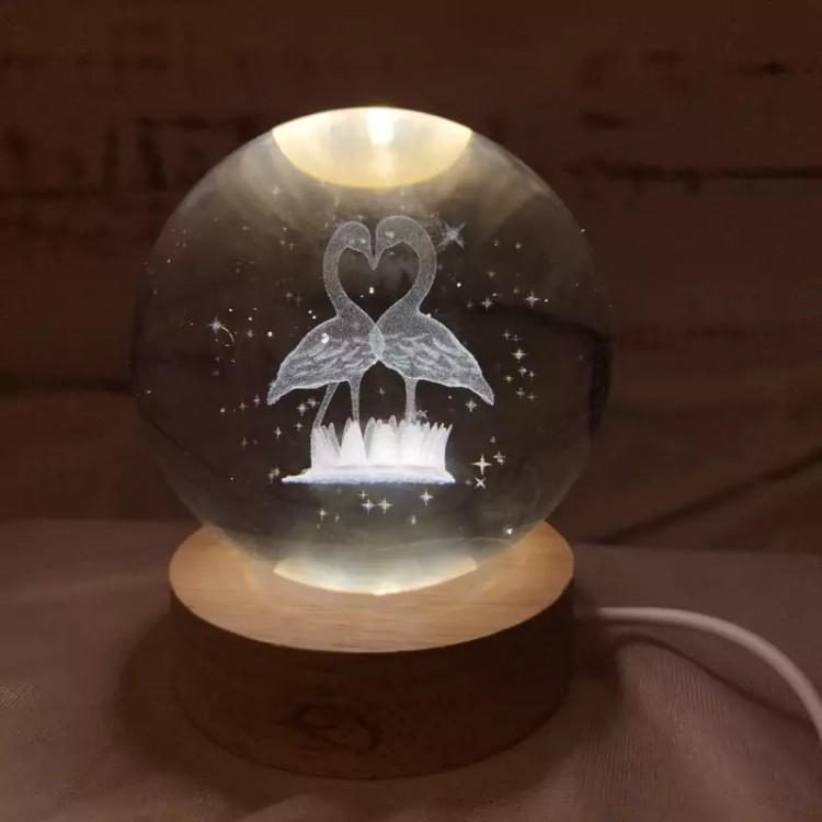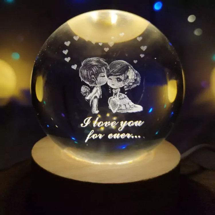گوی چراغدار هدیه ولنتاین کریستالی بزرگ هدیه جذاب چراغ خواب خاص و جدید ترند کادو ولنتاین