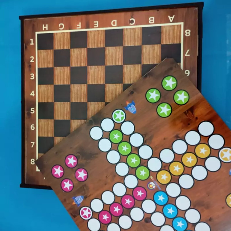 باکس پنج بازی شامل : شطرنج ،منچ ، مارپله ، دوز و تخته نرد