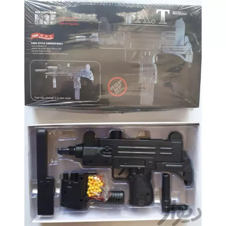 تفنگ یوزی M35 یا کلت اسباب بازی مشکی جعبه ای اصل کادویی سیسمونی ارسال فوری