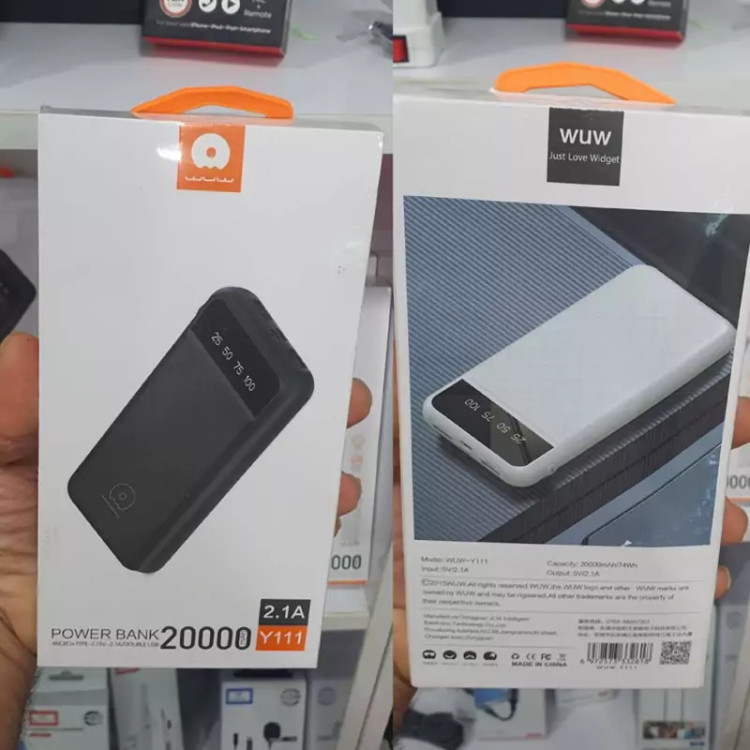 شرکت WUW انواع پاور بانک را در مدل های متنوع طراحی و تولید کرده است از جمله این محصولات به مدل y111 با ظرفیت 20000 میلیآمپرساعت میباشد که در دو رنگ مشکی و سفید به بازار عرضه شده است.