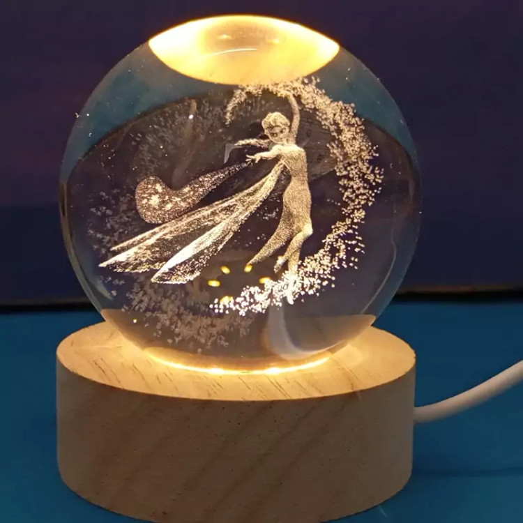 گوی چراغدار کریستالی ضد ضربه فروزن با پایه چوبی و نور LED ایده آل برای دکوری و کادو با کیفیت اورجینال